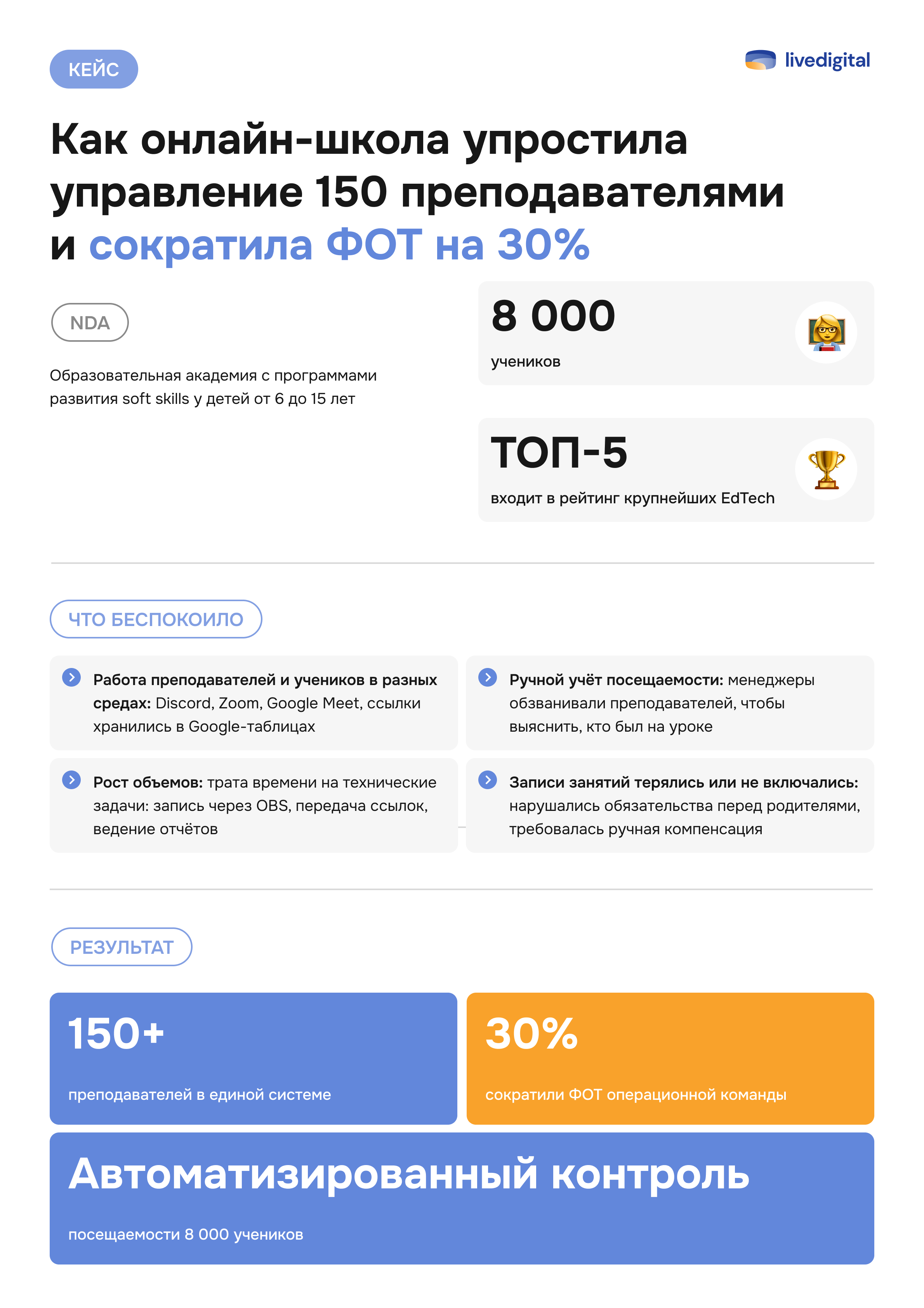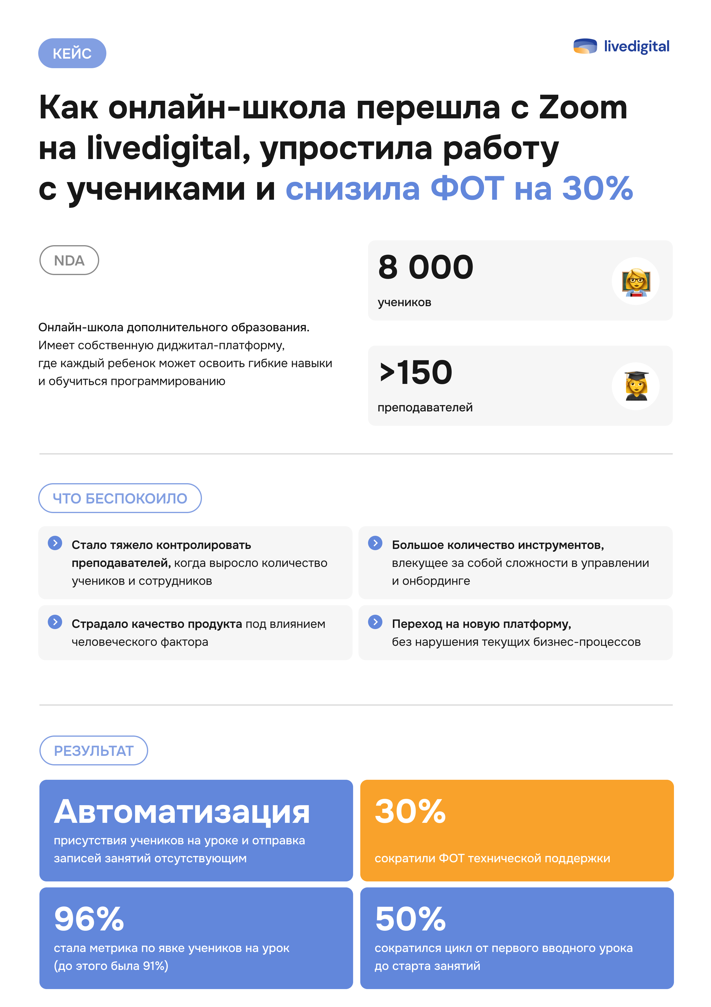 Онлайн-школа перешла с Zoom на livedigital, снизив ФОТ на 30%