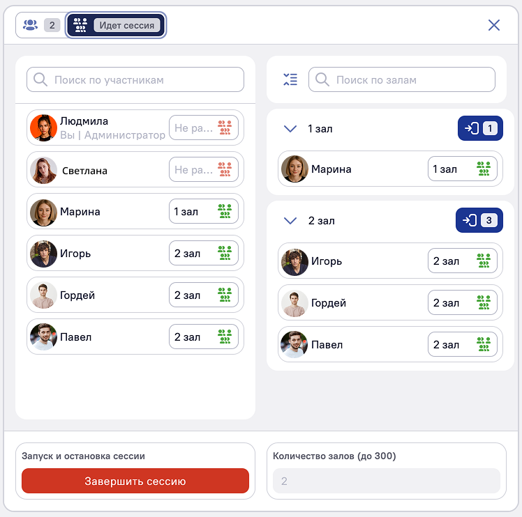 Мы добавили два наглядных сценария автоматического размещения участников по залам.